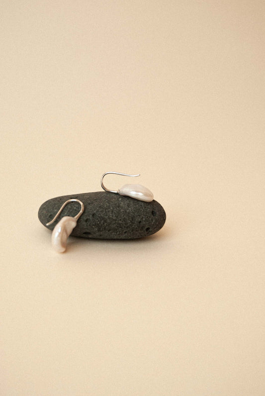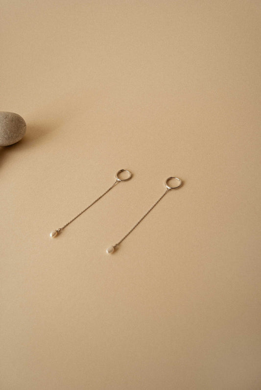 Boucles d'Oreilles Chainlet Perle / Or Blanc