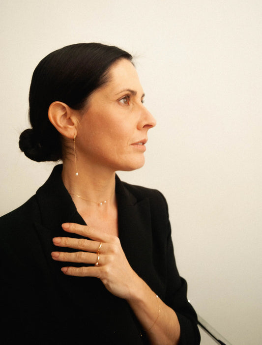 Boucles d'Oreilles Chainlet Perle / Or Jaune